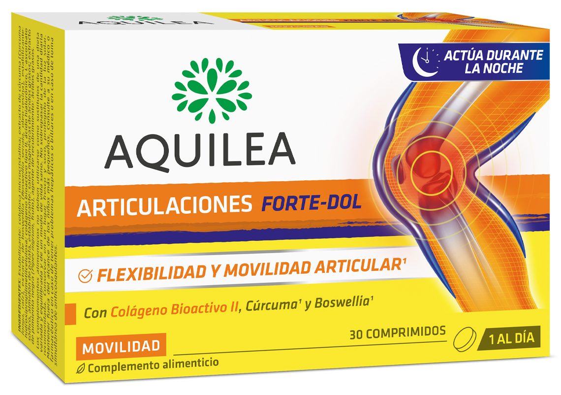 Aquilea Articulaciones Forte-Dol. Este suplemento combina colágeno, condroitina y glucosamina que aporta flexibilidad y mejorar la salud articular. Es ideal para personas activas o que presentan molestias en las articulaciones. Añadir una cucharada de 15g (un cacito) al día diluido en un vaso de (200ml) de agua, zumo, leche, té, en un yogur, etc.