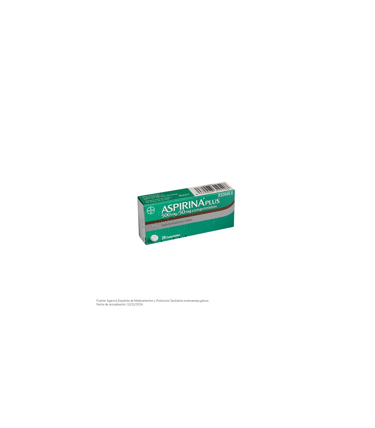 Cada comprimido contiene: Como principios activos: Ácido acetilsalicílico, 500 mg, y Cafeína, 50 mg.