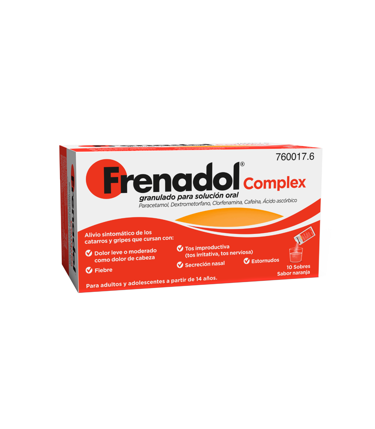 Frenadol Complex es un medicamento especialmente indicado para el alivio sintomático de catarros y gripes, fiebre y dolor de cabeza. Actúa como antitusivo, y actúa también sobre la secreción nasal y el decaimiento en general.