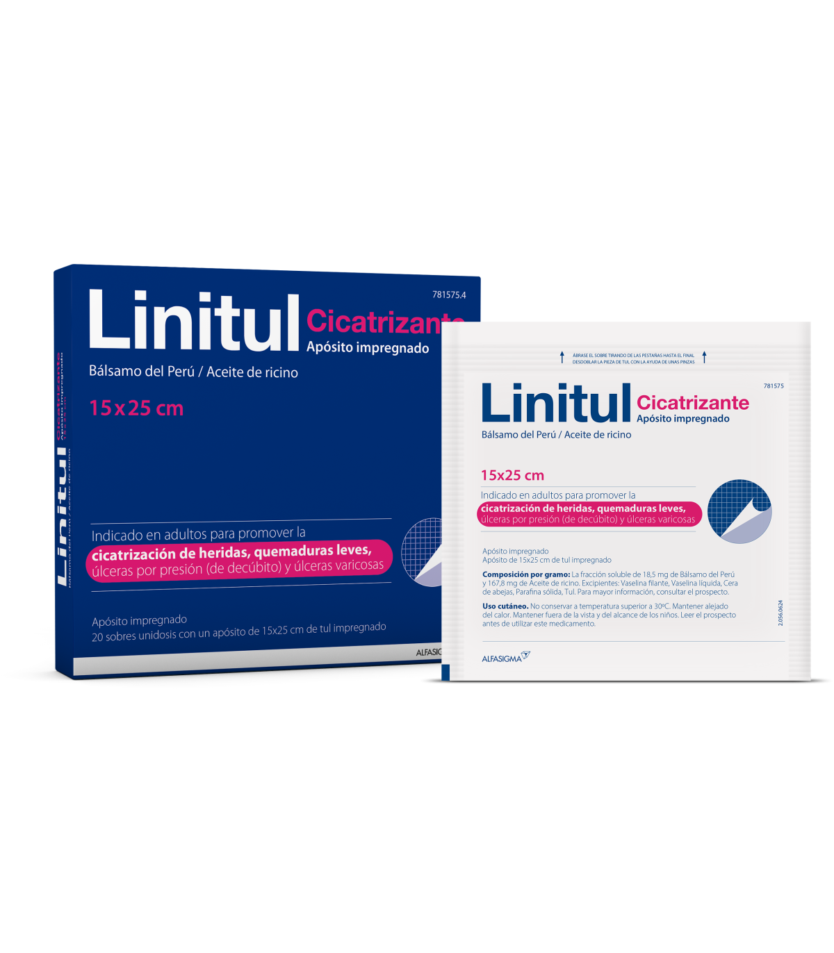 LINITUL CICATRIZANTE 20 APOSITOS IMPREGNADOS 15 X 25 CM