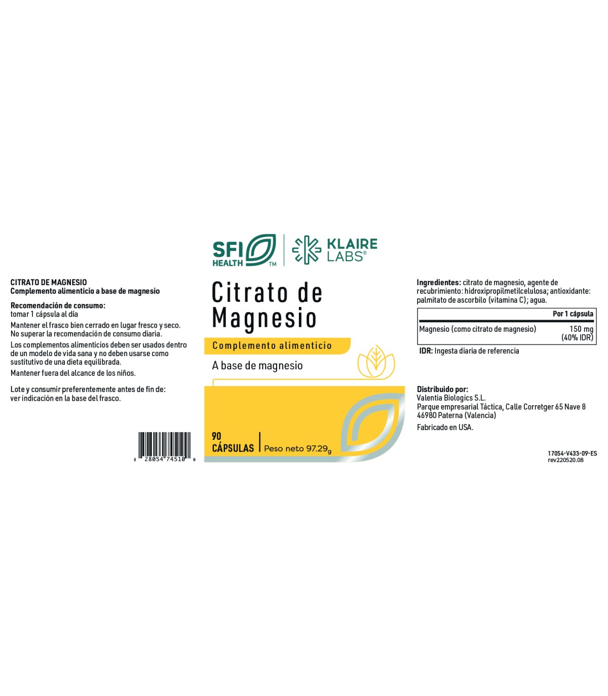 CITRATO DE MAGNESIO 90 CAPS. KLAIRE LABS